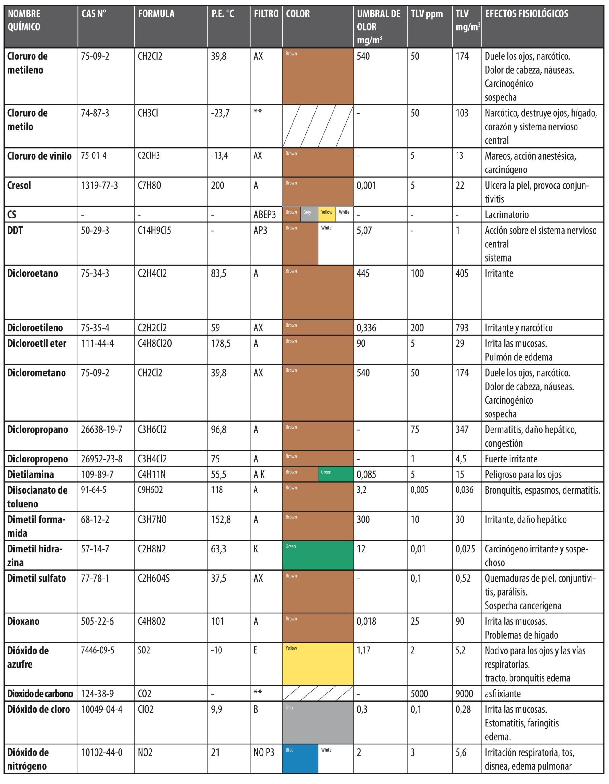 GUÍA ELECCIÓN DE FILTOS PARA GASES EN FUNCIÓN DEL AGENTE QUÍMICO