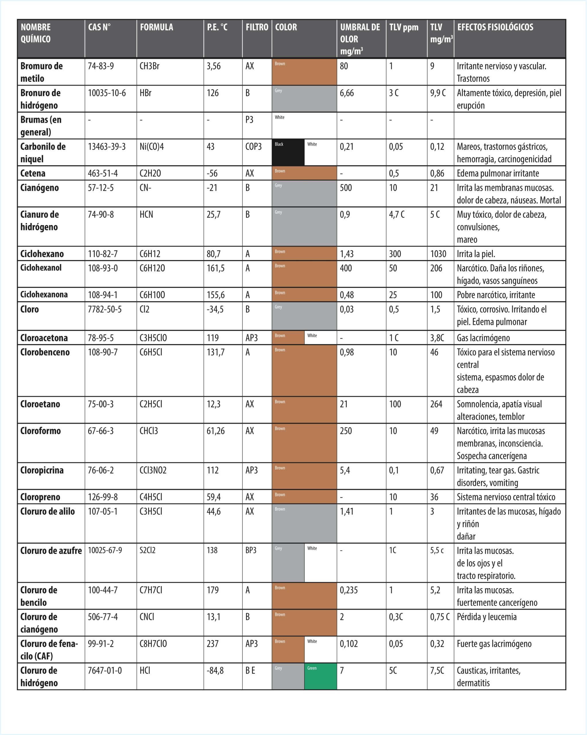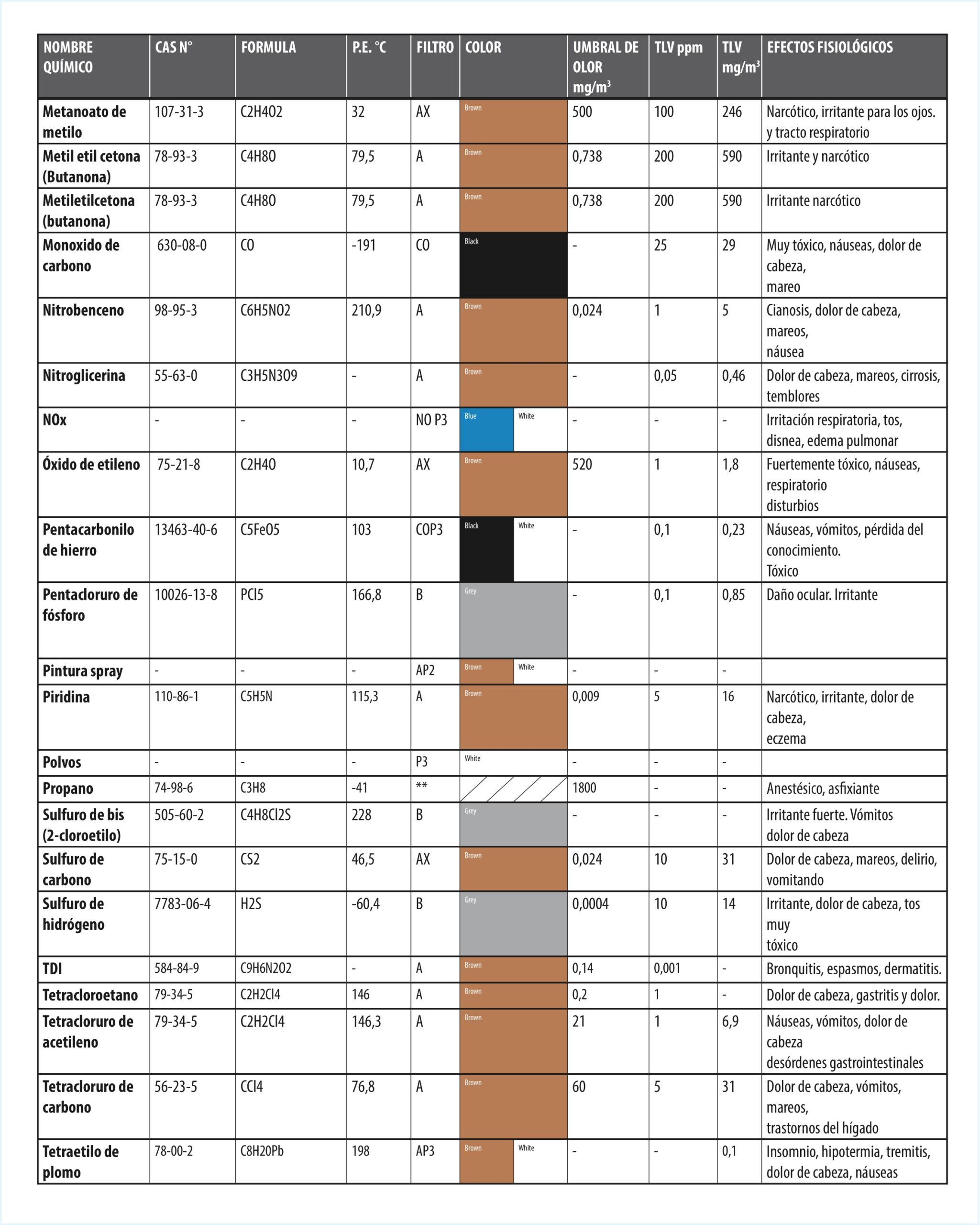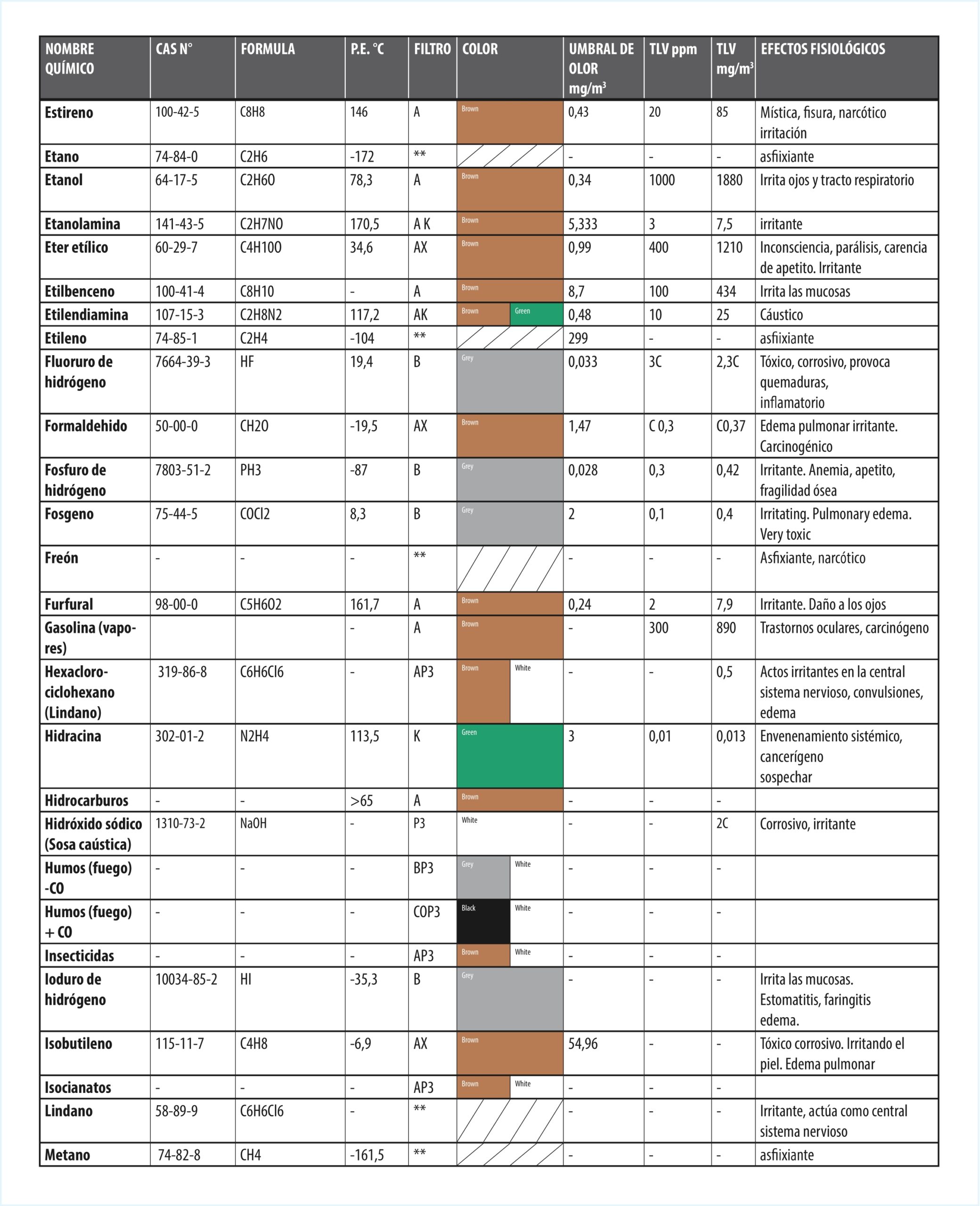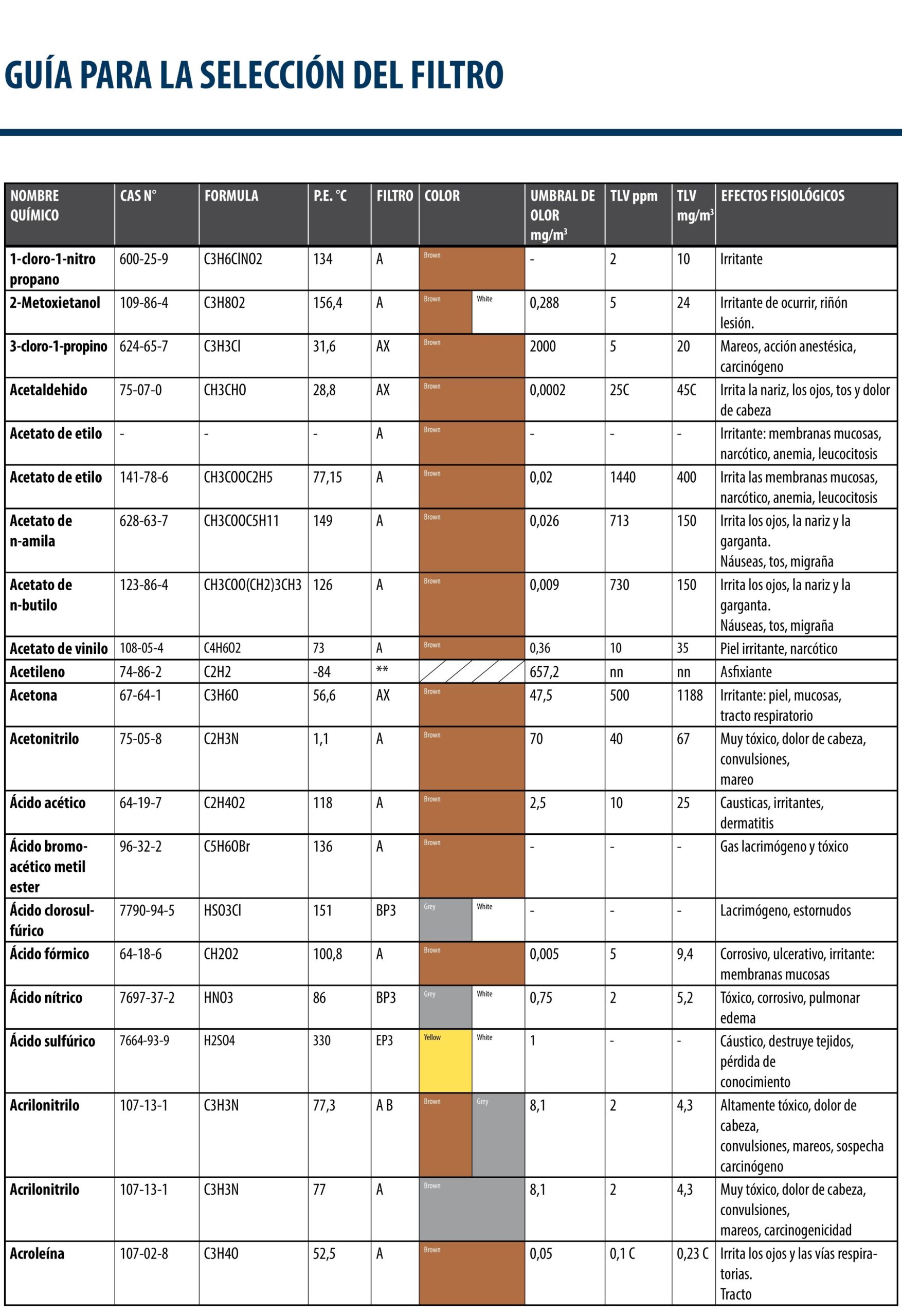 GUÍA ELECCIÓN DE FILTOS PARA GASES EN FUNCIÓN DEL AGENTE QUÍMICO