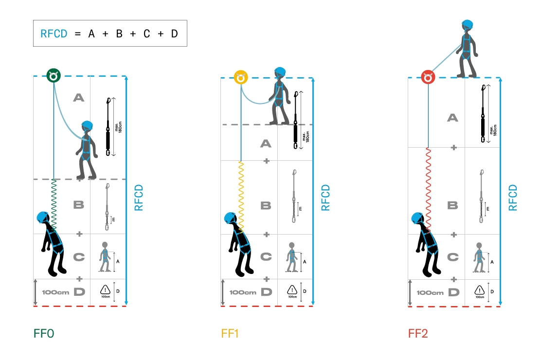 La distancia libre de caída es la distancia libre vertical mínima necesaria por debajo del usuario y el primer objeto con el que impactaría en caso de caída.