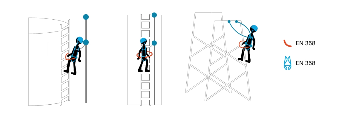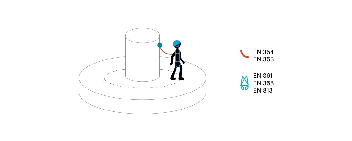 Un sistema de posicionamiento permite que el usuario mantenga los pies en contacto sobre la estructura y pueda liberar las manos para realizar un trabajo. No está diseñado para detener caídas y debe complementarse con un sistema anticaídas.