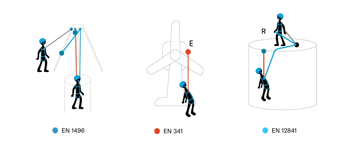 Un sistema de rescate (R) o evacuación (E) permite la elevación o descenso de una persona accidentada a un lugar seguro.