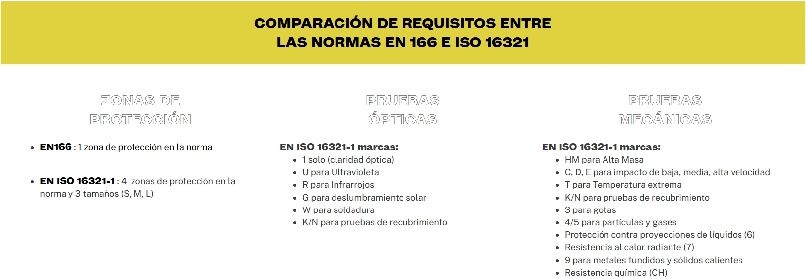 COMPARACIÓN REQUISITOS NORMATIVAS EN 166 Y EN ISO 16321