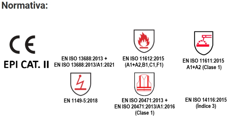 • T. Exterior: 54% Modacrílico / 44% Algodón peinado / 2% Antiestático. Acabado TEFLÓN 6 Forro Interior: Aislante THINSULATE FR Forro Exterior: 98% Algodón / 2%. Antiestático.