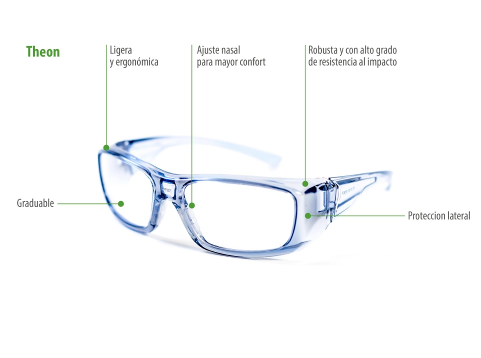 La gafa Theon es una gafa ligera y ergonómica con protección lateral.