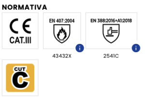 • Resistente al calor por contacto (350ºC durante 15 segundos), excelente comportamiento a la llama y al calor convectivo.
