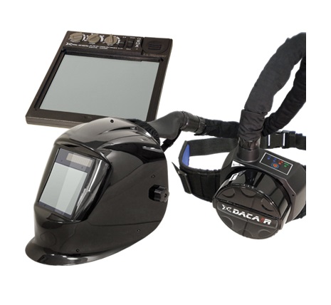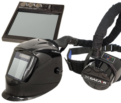 Compuesta de un motoventilador compacto y ligero (920 g) con filtro reemplazable P R SL para partículas y aerosoles y un prefiltro, que se alimenta con batería Li-Ion recambiable y recargable, la unidad DACAiR permite una selección entre dos caudales de aire: 180 ó 220 l/m, flujos siempre constantes bajo control electrónico.